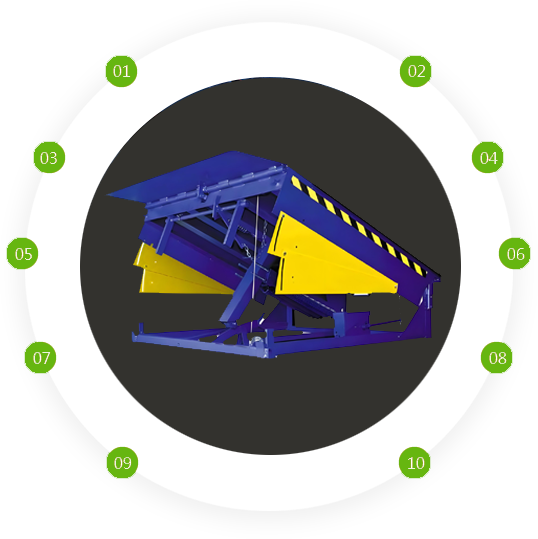 液壓登車橋:是實現貨物快速裝卸的輔助設備,高度調節(jié)功能使貨車與庫房的貨臺之間架起一座橋梁,叉車可駛入貨車內部進行貨物的批量裝卸,也叫裝卸平臺。